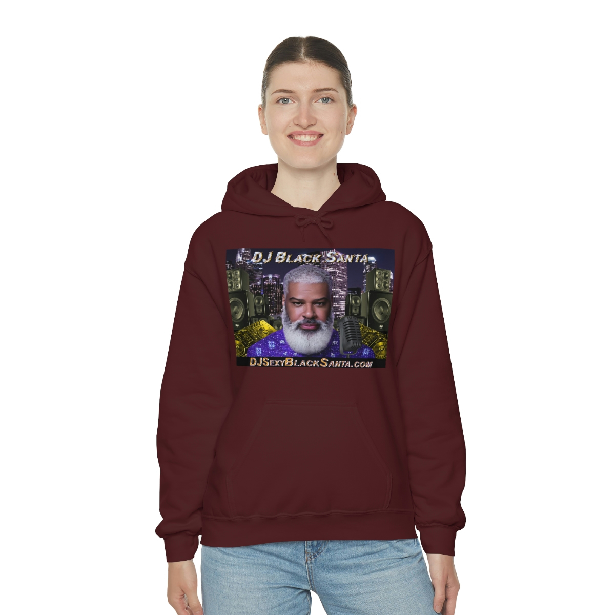 DJ Black Santa – City Background – Unisex Heavy Blend™ Hooded Sweatshirt