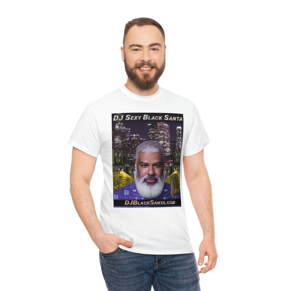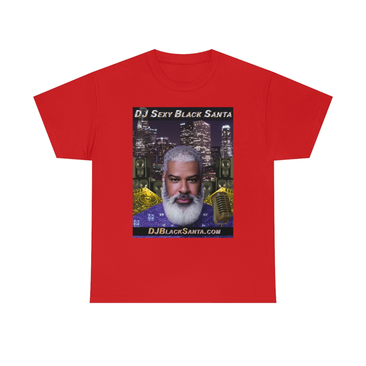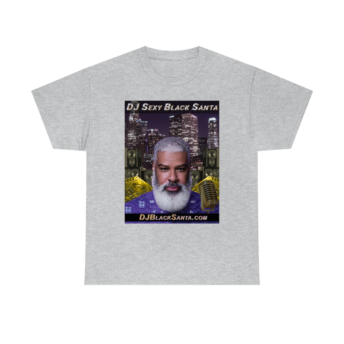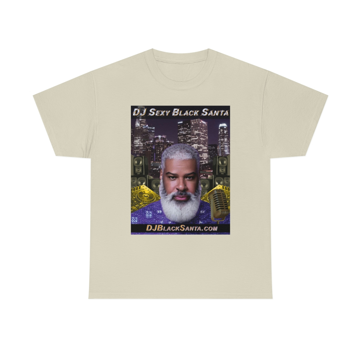 DJ SEXY BLACK SANTA – City Background – Unisex Heavy Cotton Tee