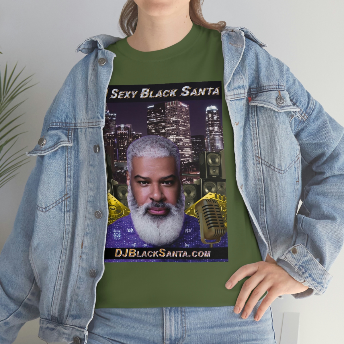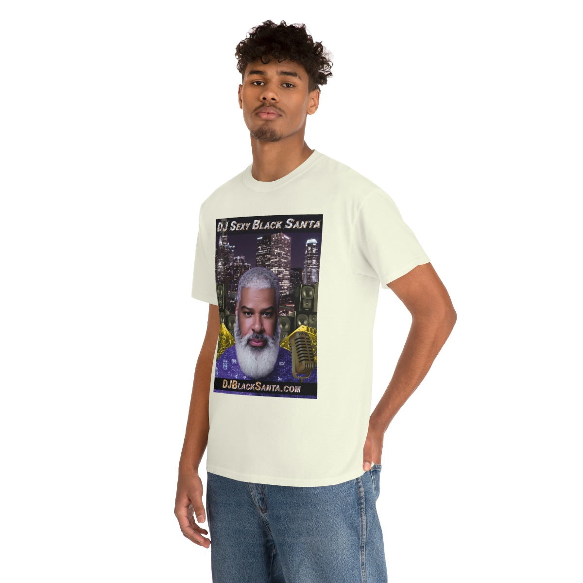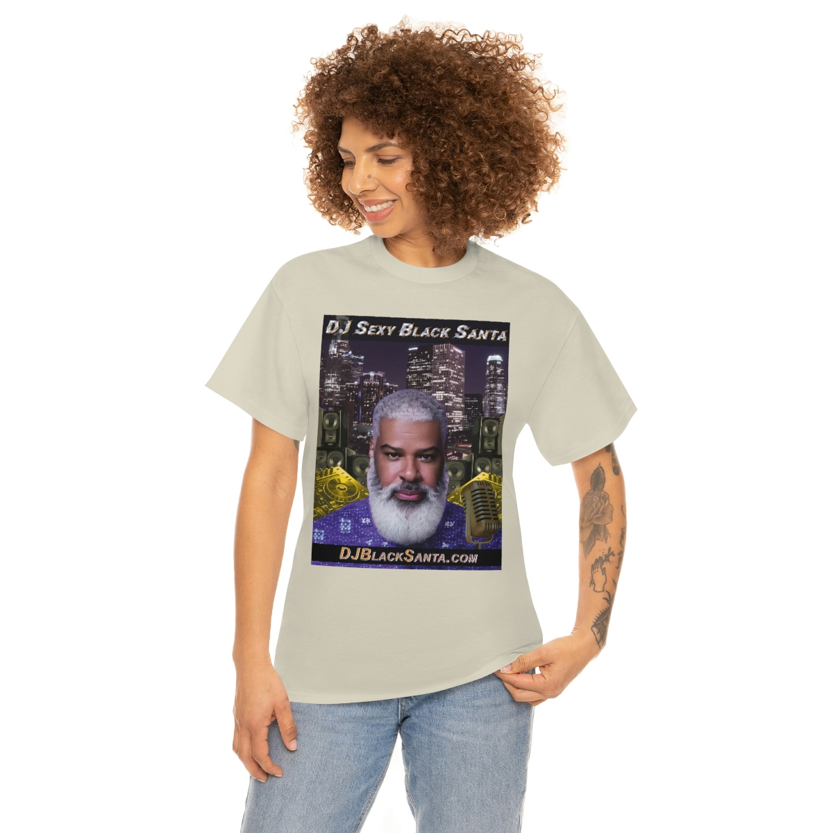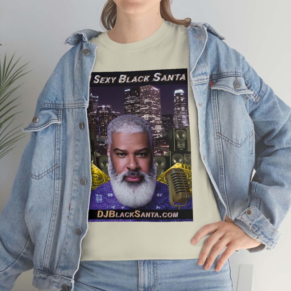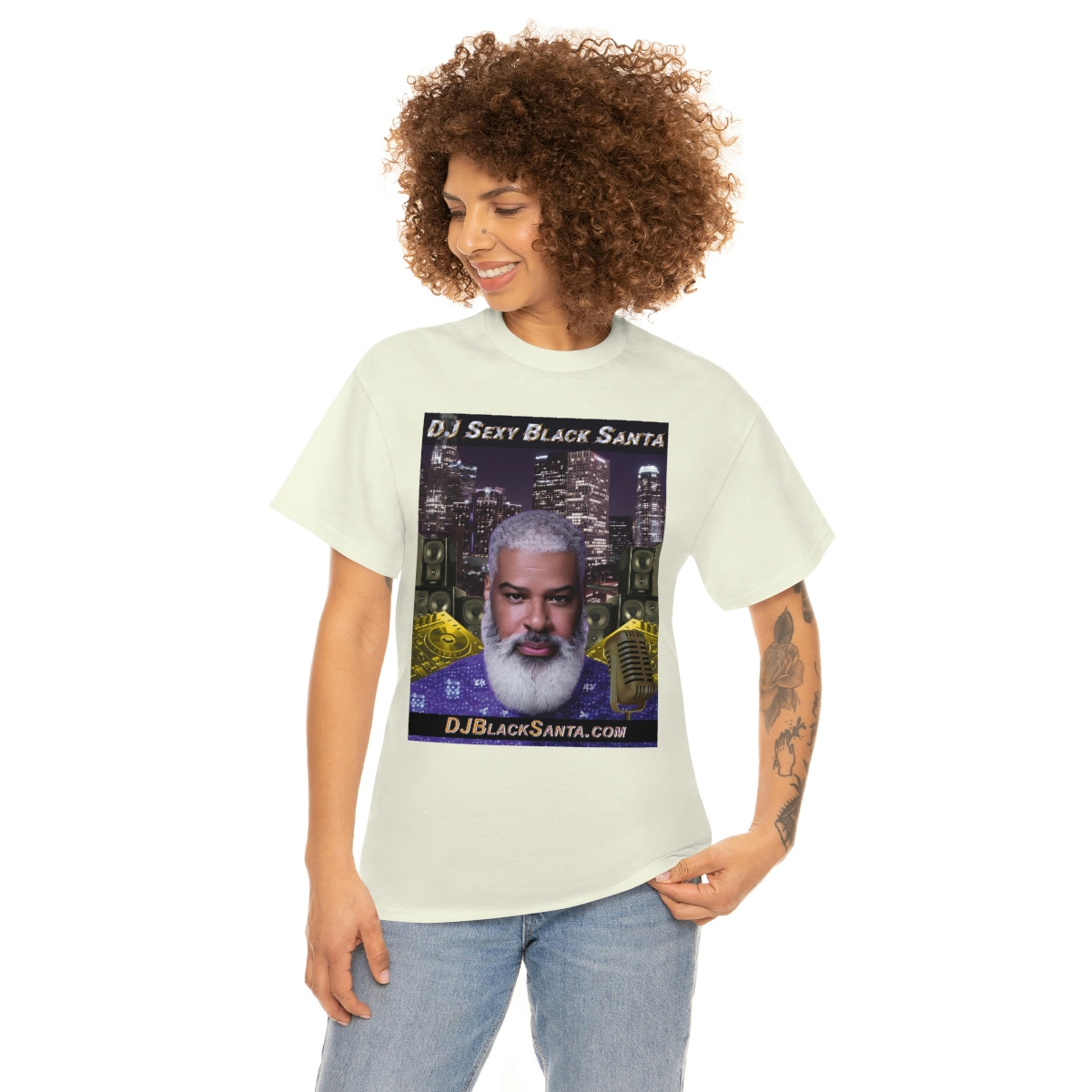 DJ SEXY BLACK SANTA – City Background – Unisex Heavy Cotton Tee