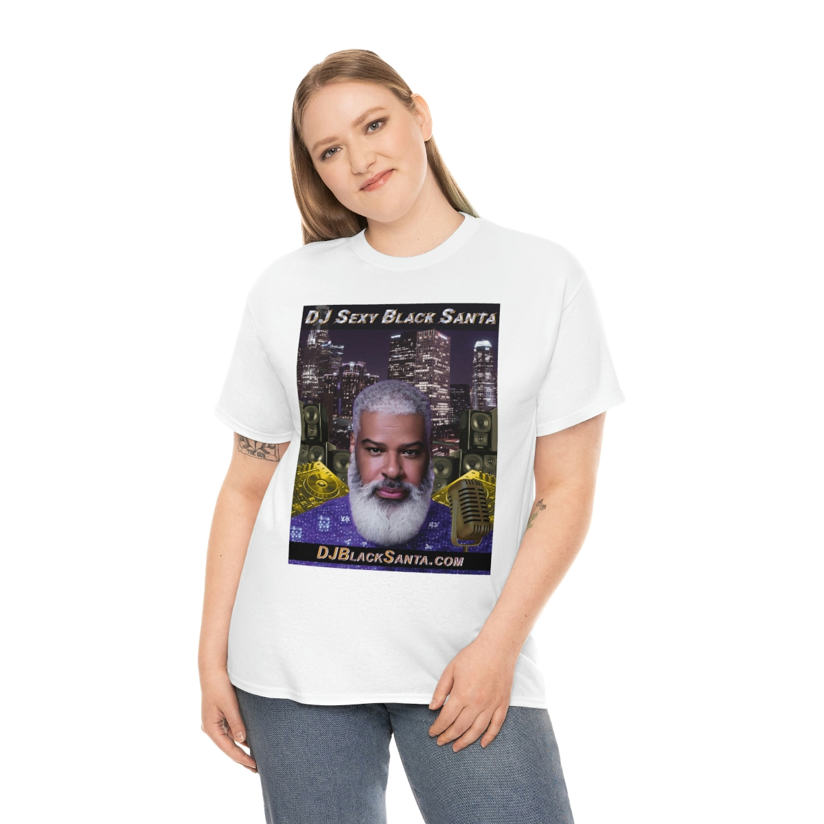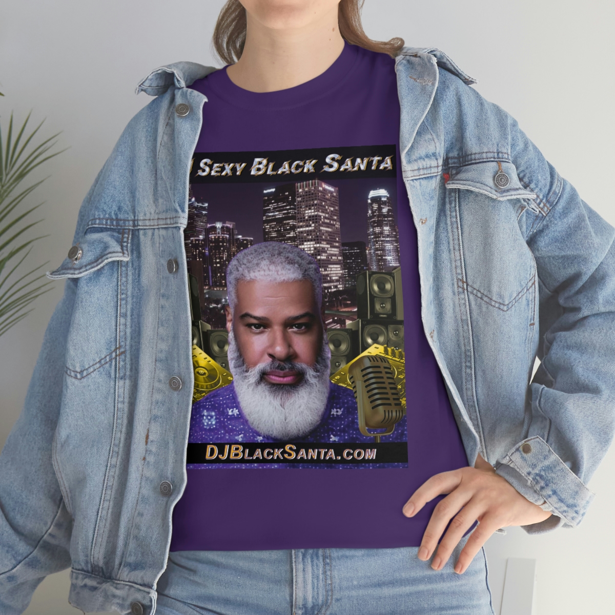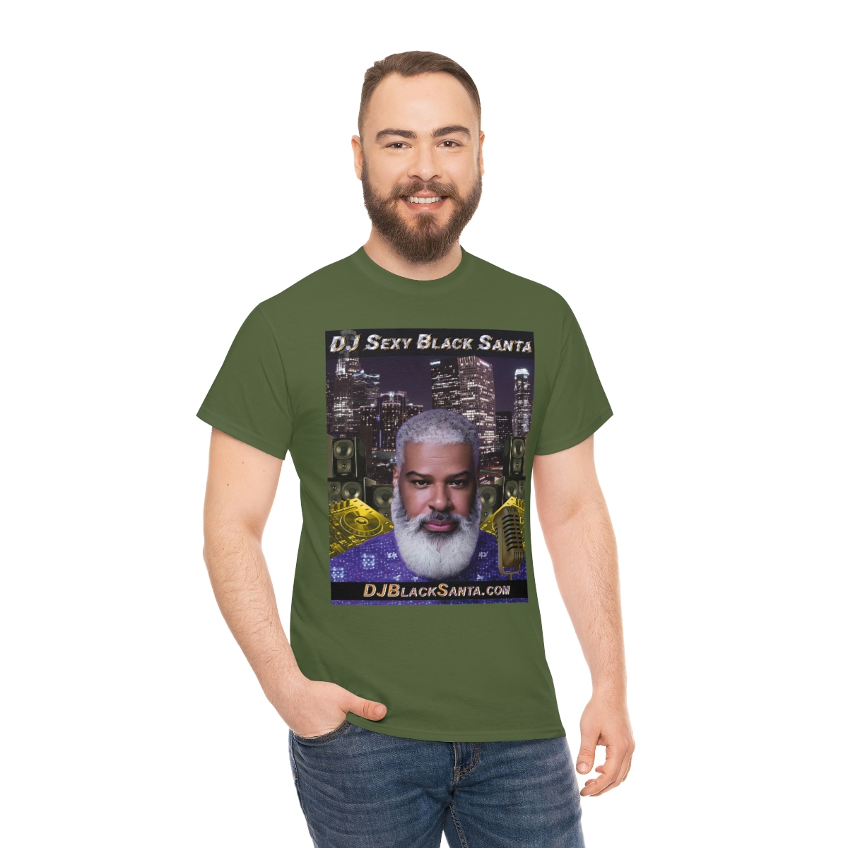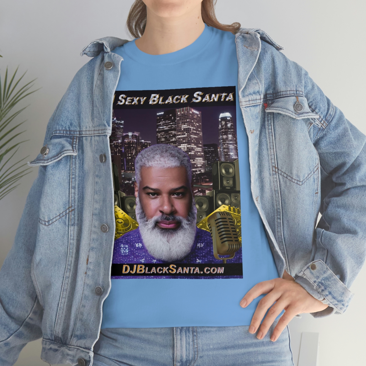 DJ SEXY BLACK SANTA – City Background – Unisex Heavy Cotton Tee