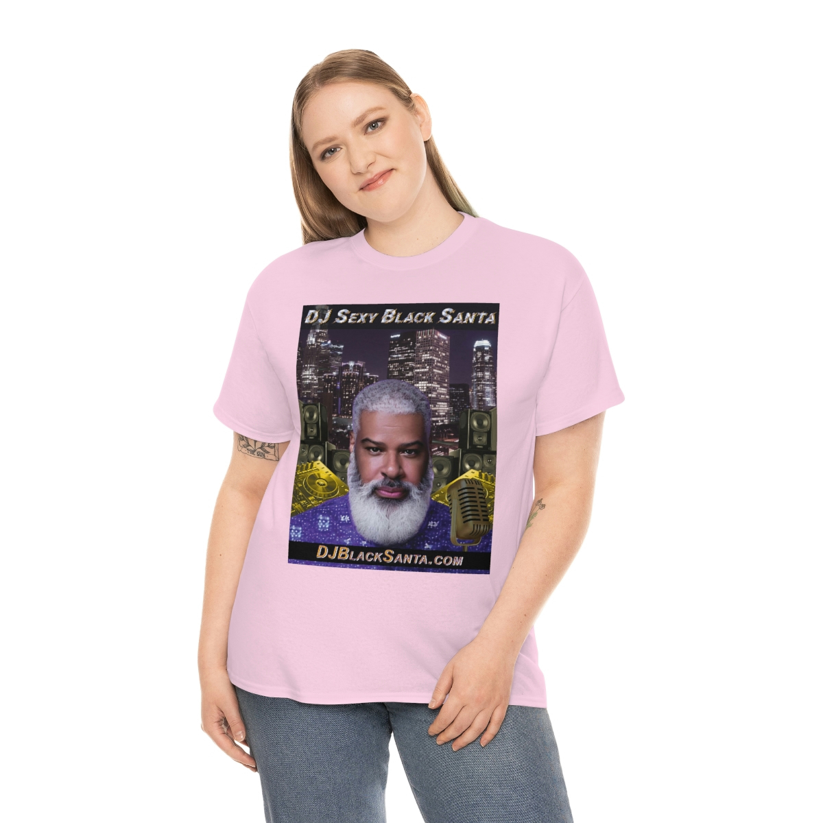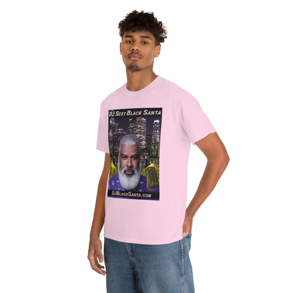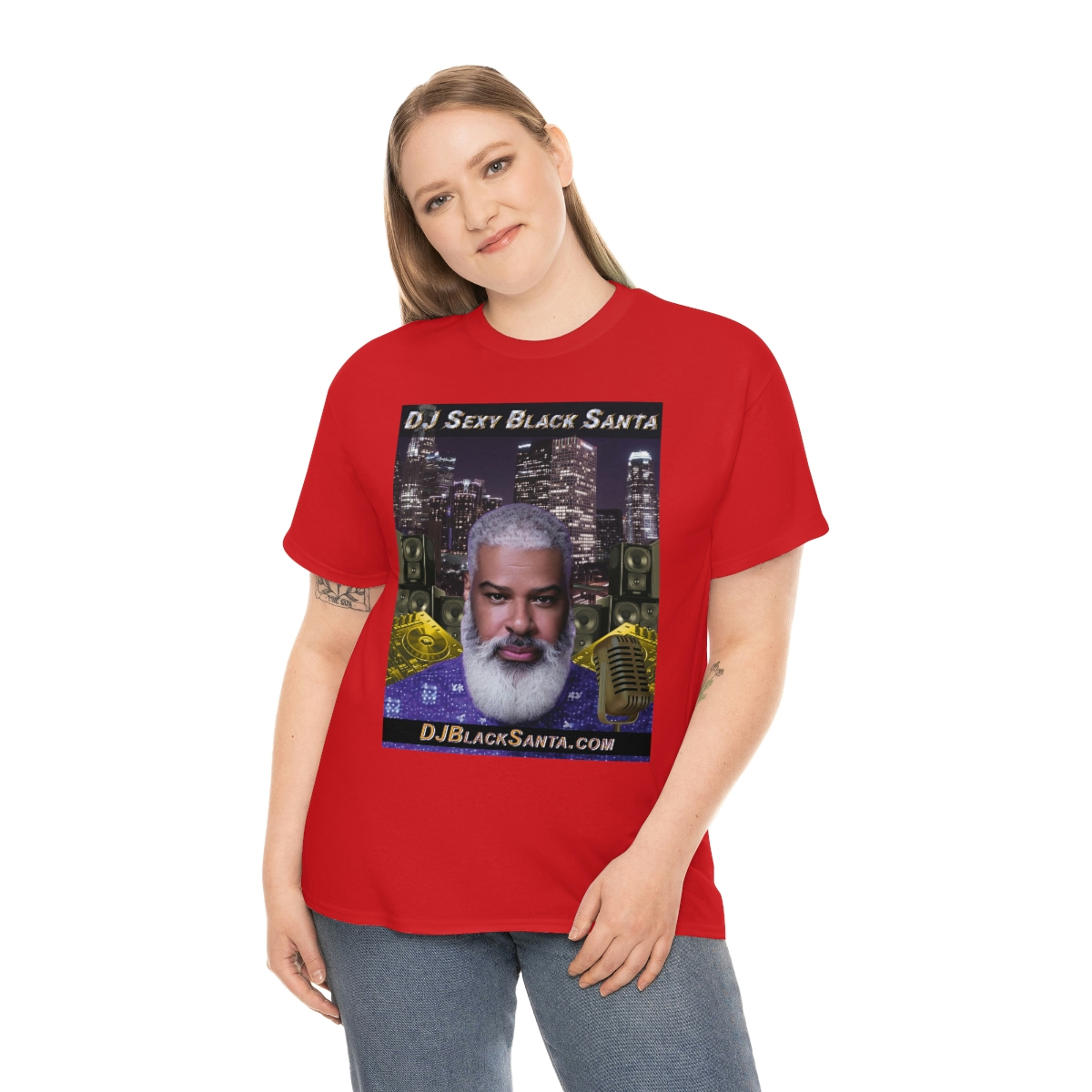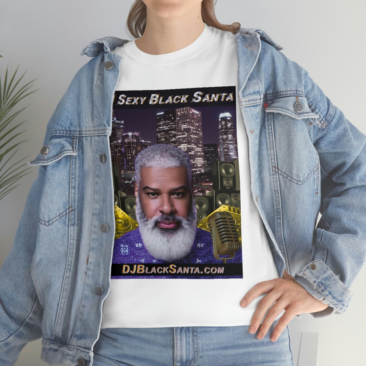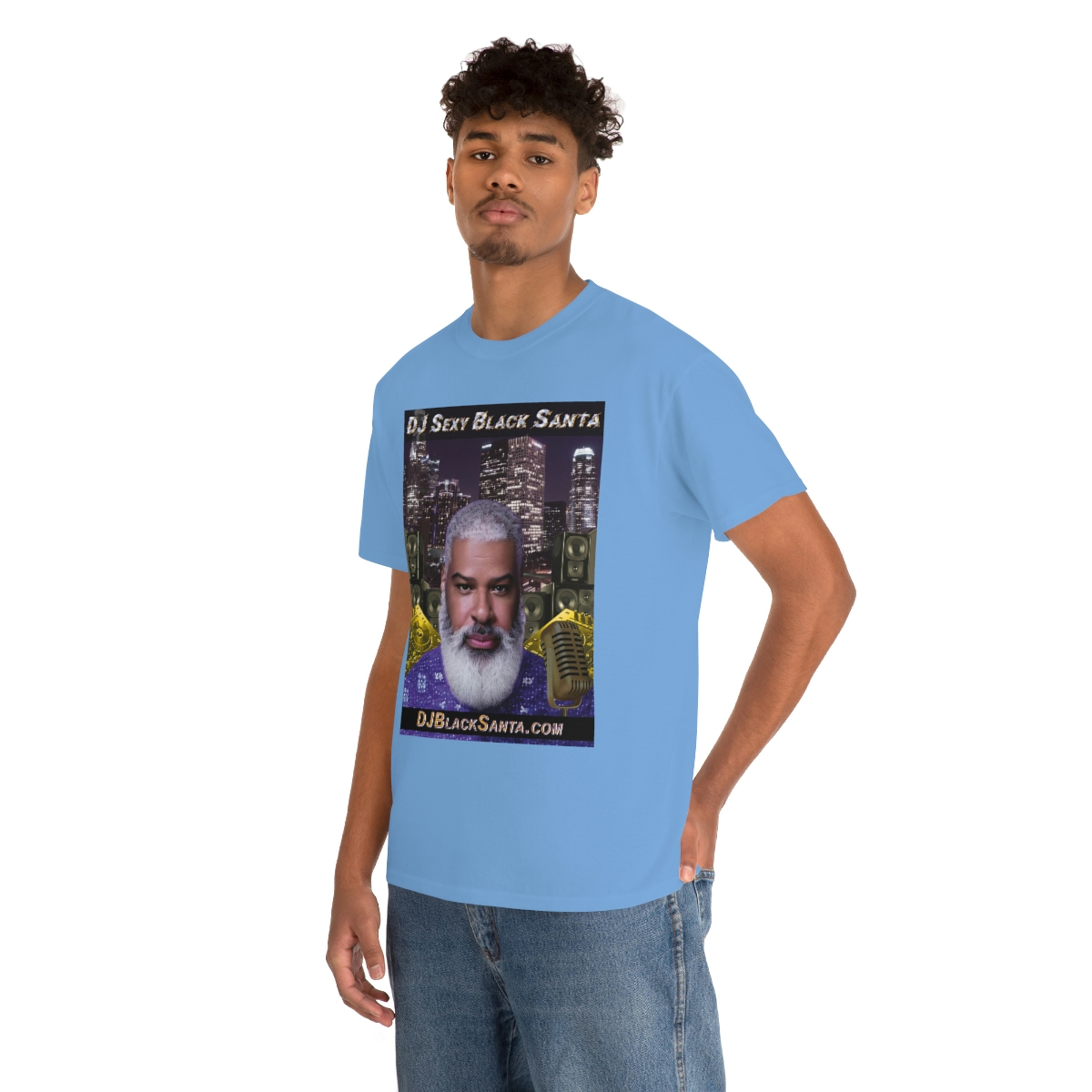 DJ SEXY BLACK SANTA – City Background – Unisex Heavy Cotton Tee