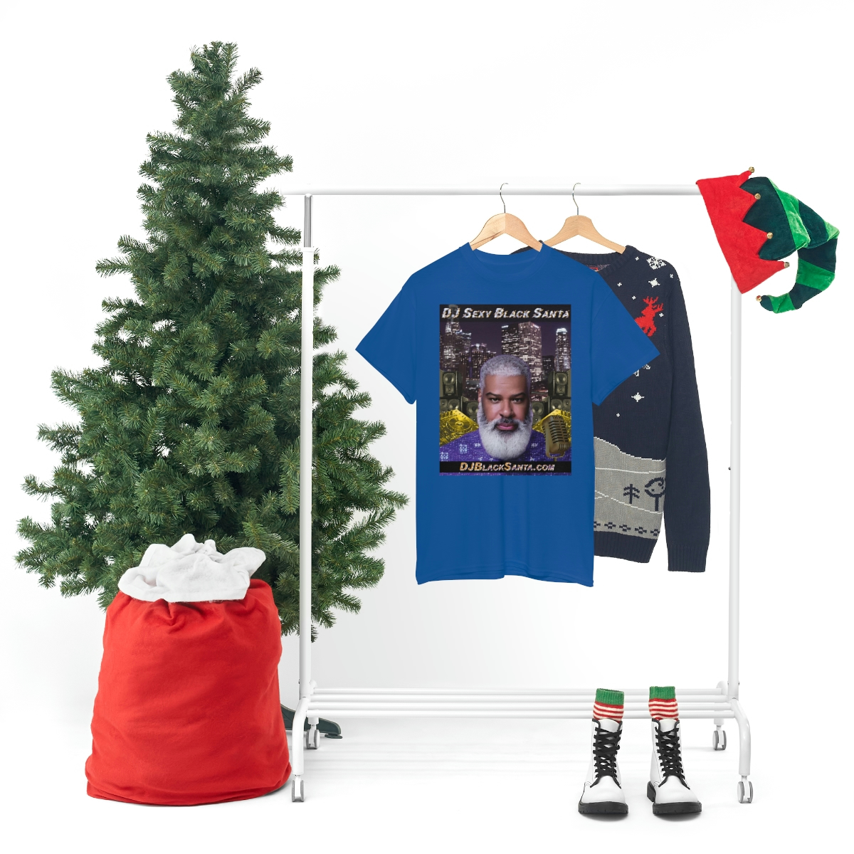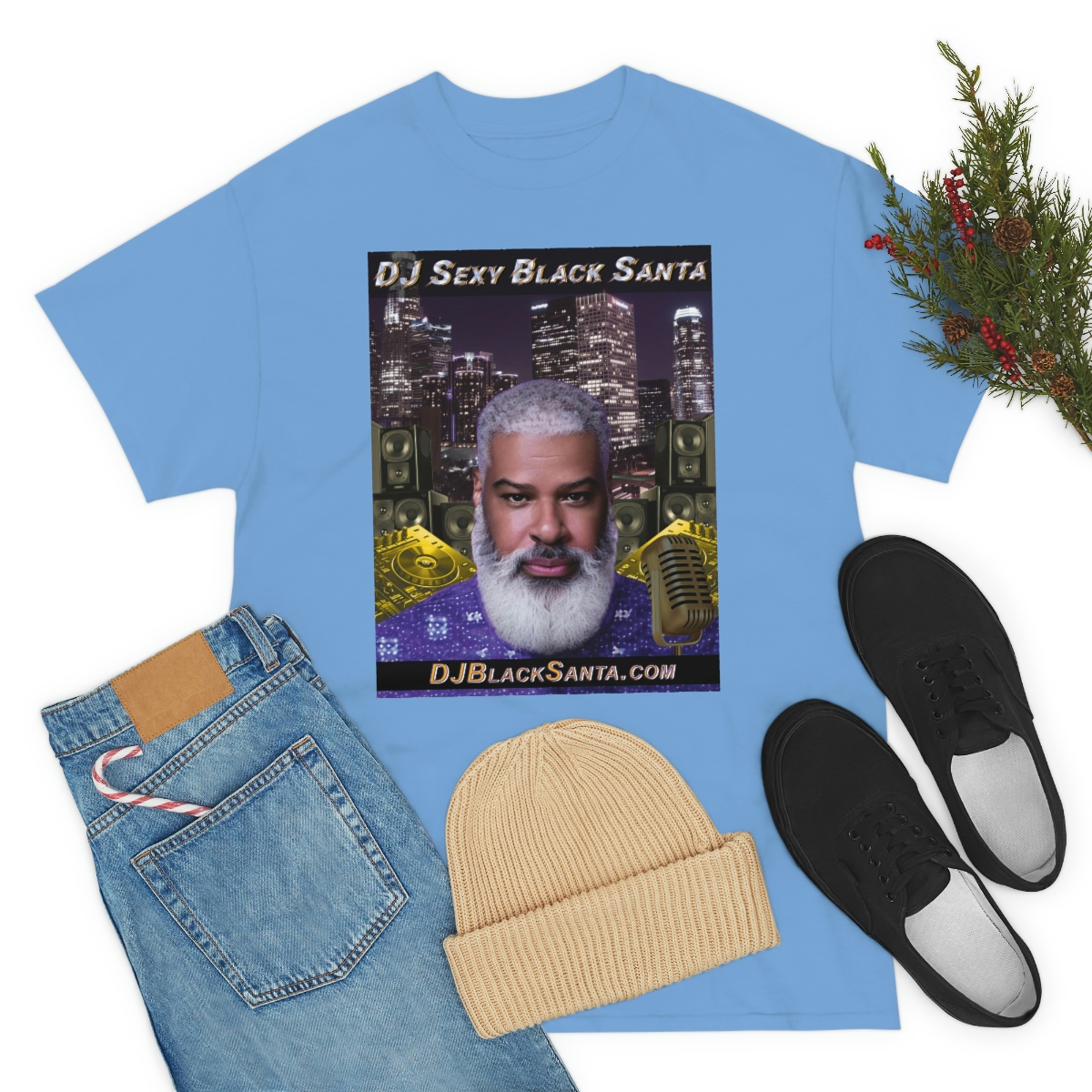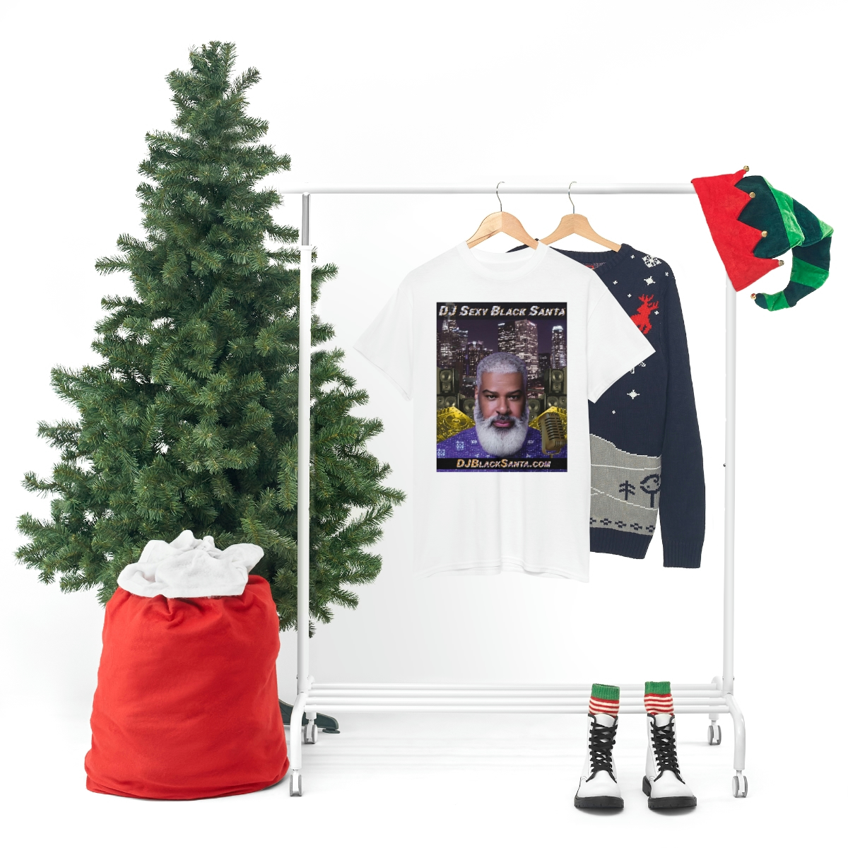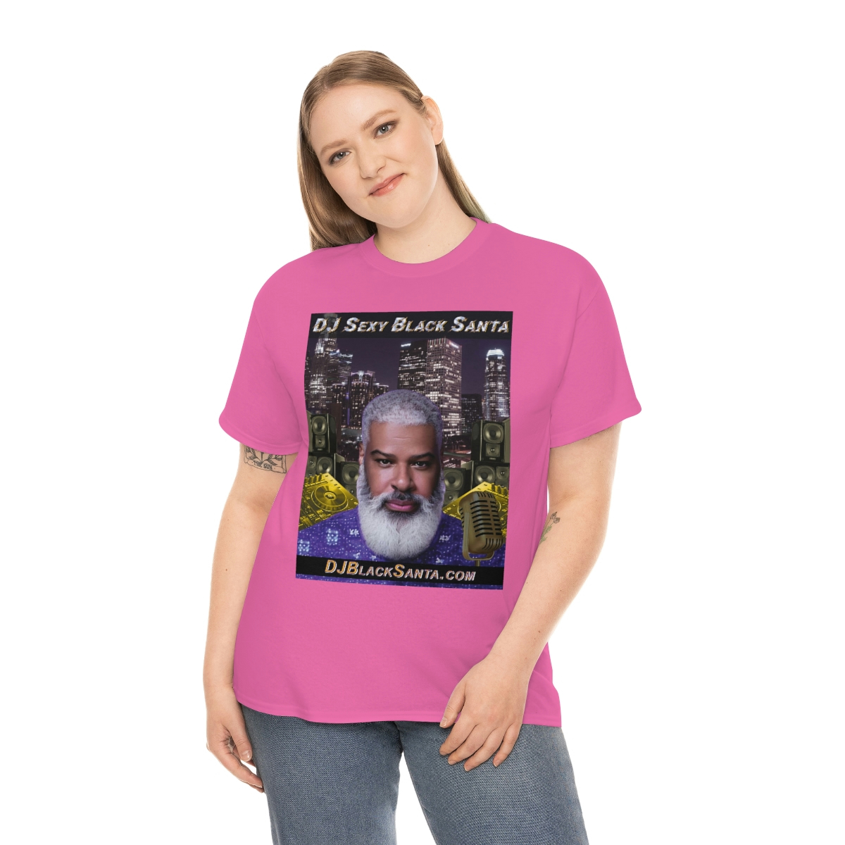 DJ SEXY BLACK SANTA – City Background – Unisex Heavy Cotton Tee