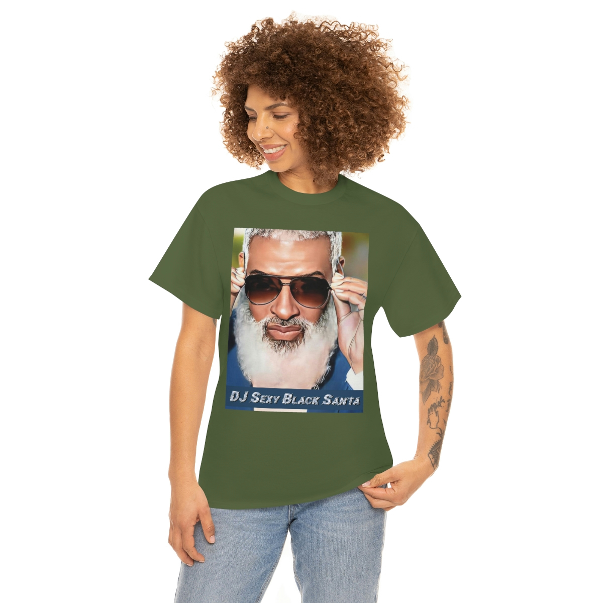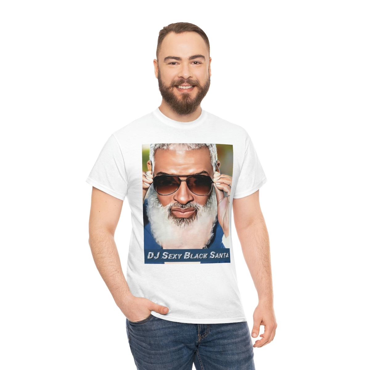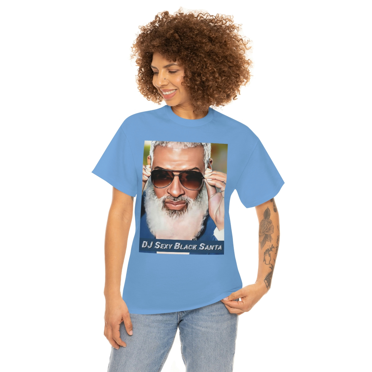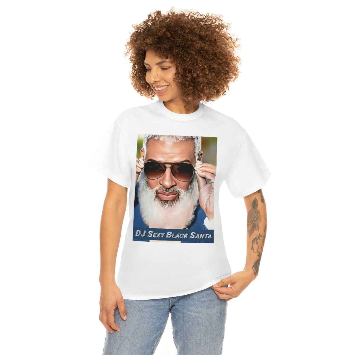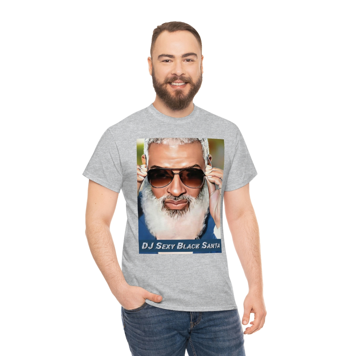 DJ SEXY BLACK SANTA – W/Sun Glasses – Unisex Heavy Cotton Tee